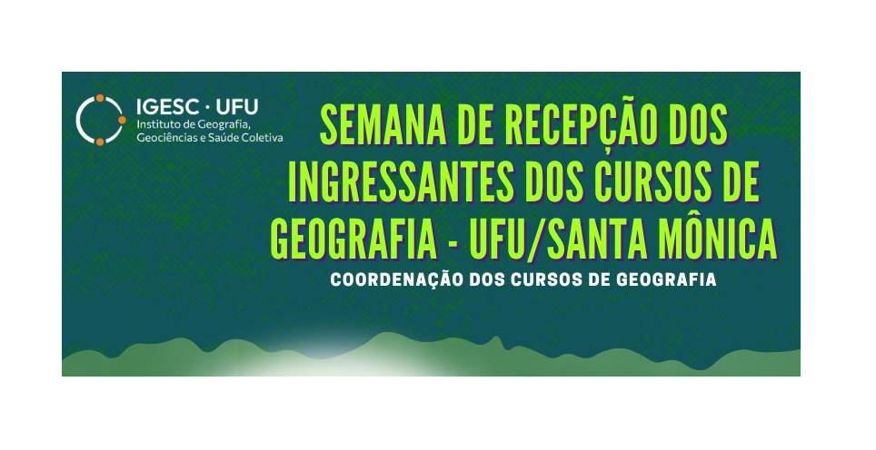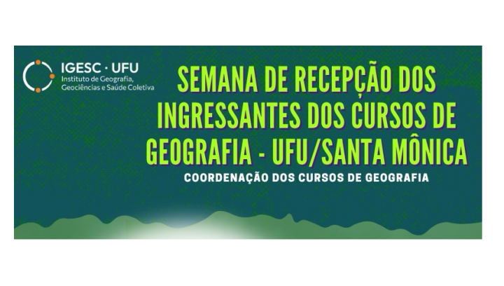 A "Semana de recepção dos ingressantes do curso de Geografia - UFU/Santa Mônica" busca a integração entre docentes, discentes e a comunidade externa por meio de palestras, mesas redondas, visitas guiadas aos laboratórios, atividades de acolhimento e integração e o diálogo com profissionais e egressos dos cursos de Geografia Licencitura e Bacharelado da UFU. O evento conta com a parceria do Instituto de Geografia, Geociências e Saúde Coletiva (IGESC), a Coordenação dos cursos de graduação em Geografia e o Diretório Acadêmico da Geografia.