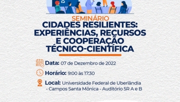 SimpósioSimpósio Cidades Resilientes: experiências, recursos e cooperação técnico-científicaEvento destacará possibilidades de cooperação entre agentes públicos 09/11/2022 - 18:06
